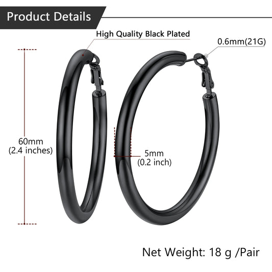 Small 60Mm Black Tube Hoop Earrings Women Girls with Sterling Silver Post